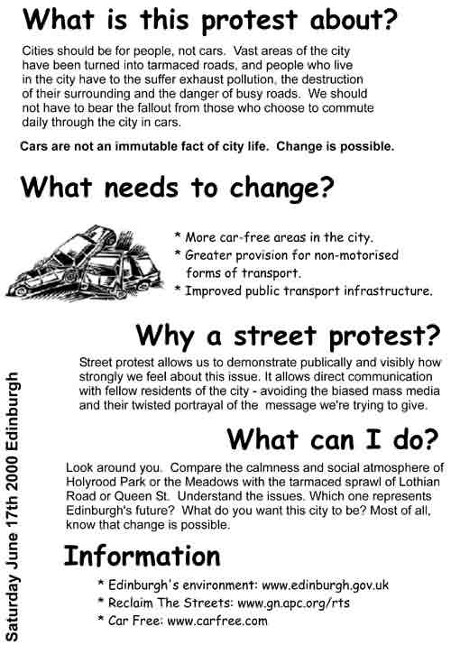 The text of a flyer handed out on the day... "Where do you want to go today?" Out onto the street for a spontaneous, free, noisy, creative,
